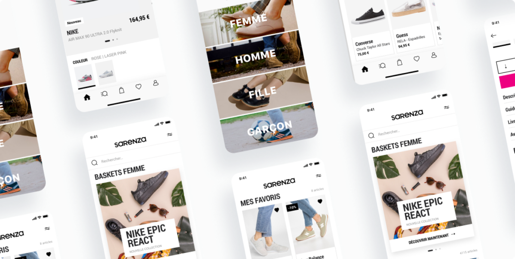 We have been chosen by Sarenza to undertake a complete redesign of their mobile applications for iOS and Android. With the aim of supporting the brand’s repositioning efforts, we worked closely with Sarenza in the conceptualization, development, and execution of a comprehensive audit covering the technical, functional, and UX/UI aspects of their mobile applications.